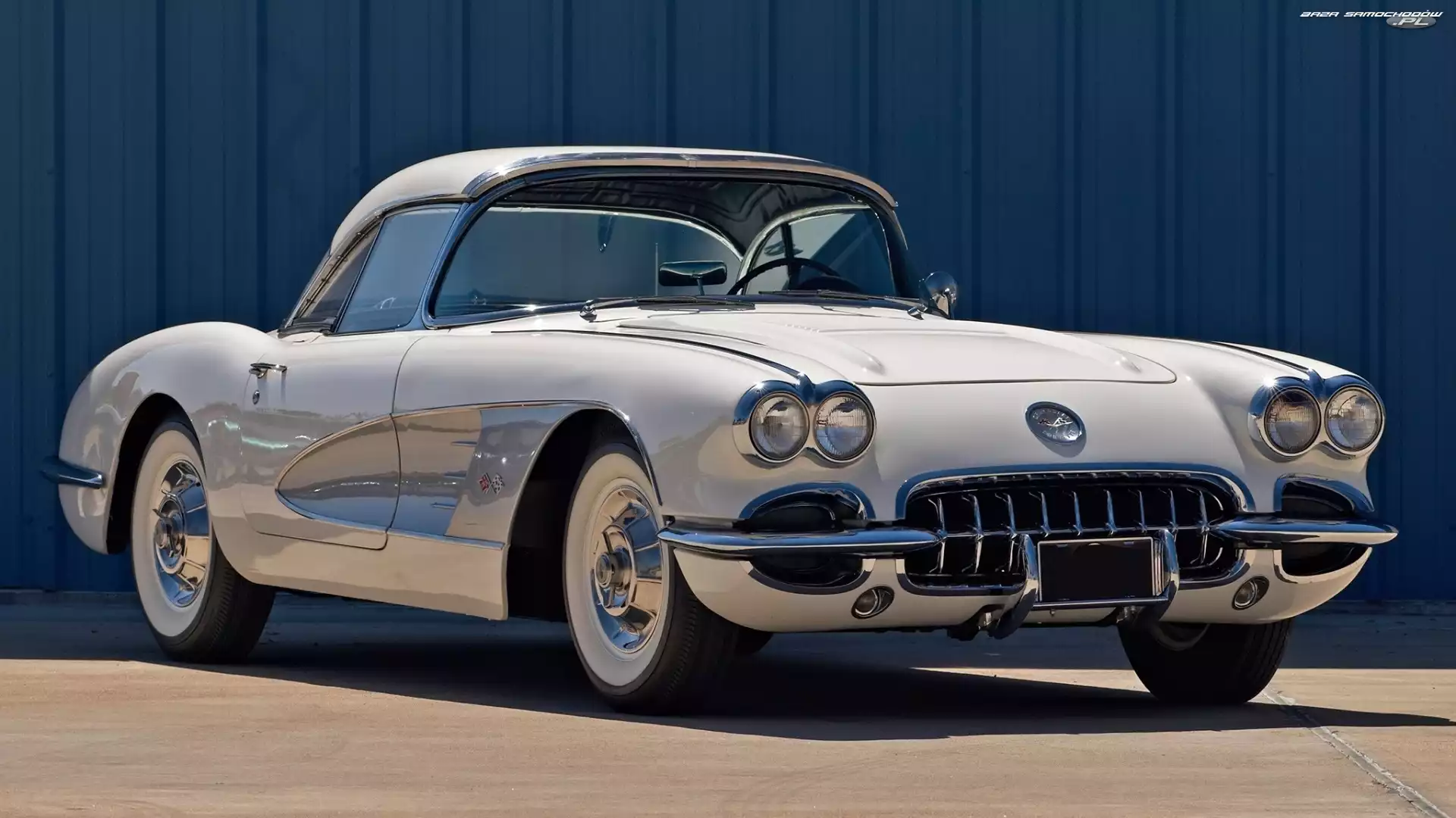 Corvette, Biały, Zabytkowy, 1958, Chevrolet, Stingray- Zdjęcia samochodów
