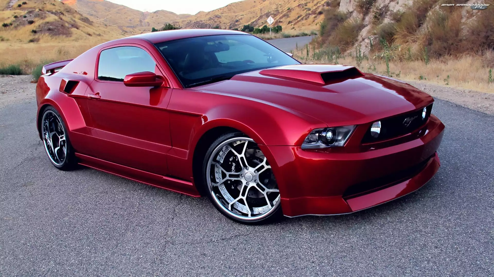 Droga, Wiśniowy, Ford Mustang- Zdjęcia samochodów
