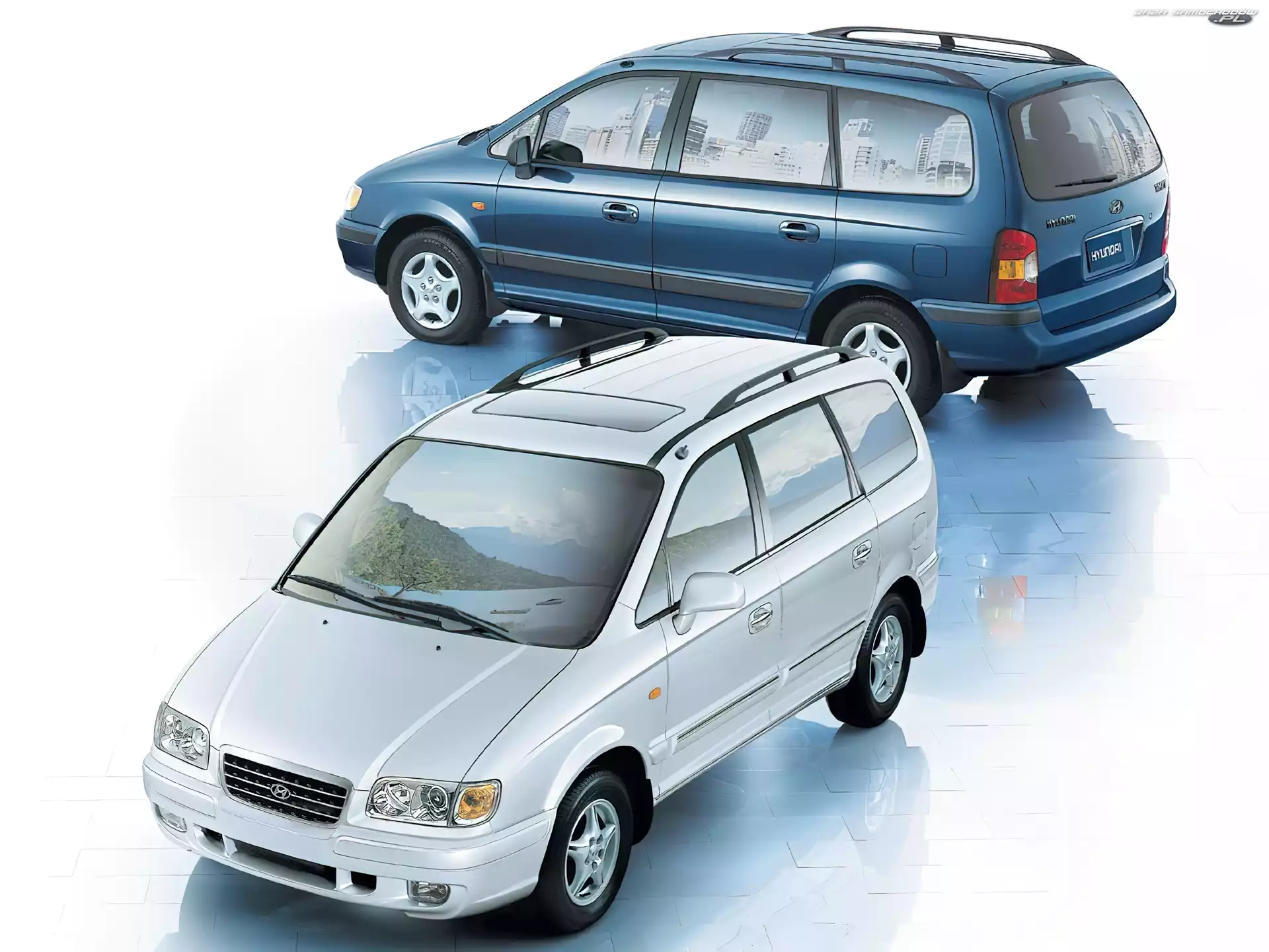 Niebieski, Hyundai Trajet, Srebrny- Zdjęcia samochodów