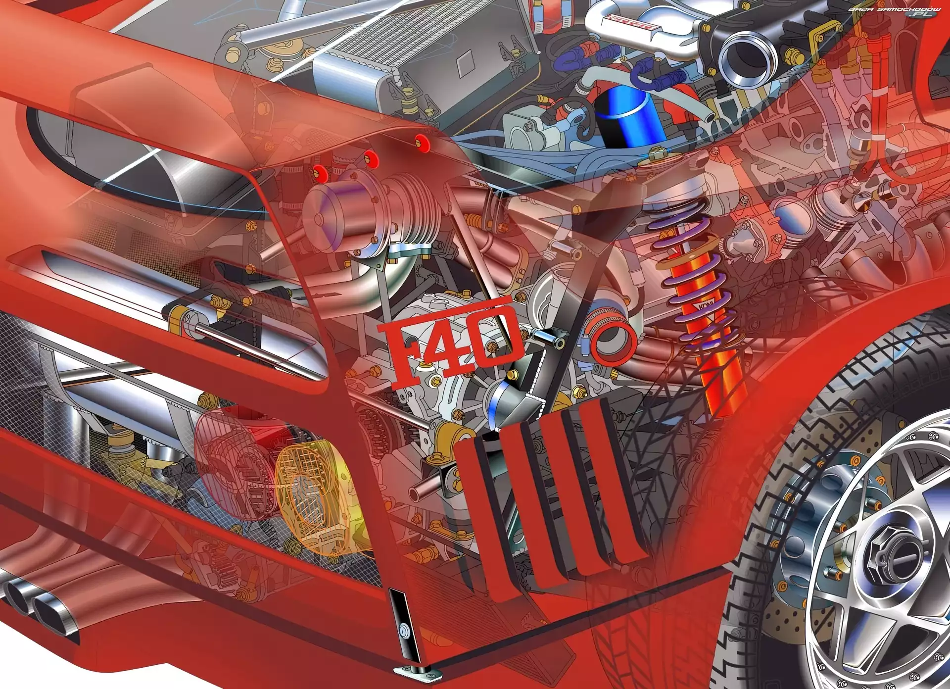Silnik, Przekrój, Ferrari F 40- Zdjęcia samochodów